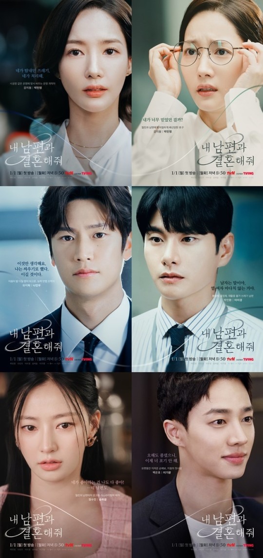 드라마 '내 남편과 결혼해줘'의 박민영, 나인우, 이이경, 송하윤, 이기광의 캐릭터 포스터가 공개되었습니다.
